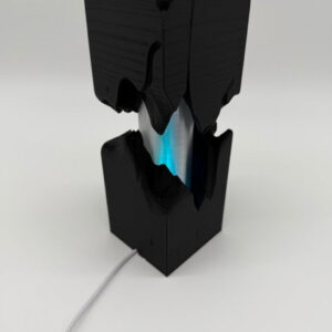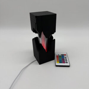 This unique table lamp immediately catches the eye thanks to its split black design , through which light subtly shines. The included remote control lets you easily choose from various colors and light modes, allowing you to fully customize the ambiance of your home.