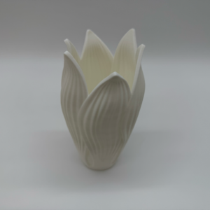 Let your interior blossom with this white 3D-printed designer vase in the shape of a flower , inspired by the elegant lines of a tulip. The organic design with overlapping petals gives the vase a natural and refined look. Perfect for lovers of botanically inspired and modern interior design.