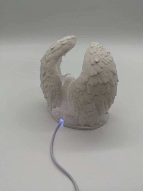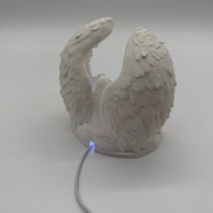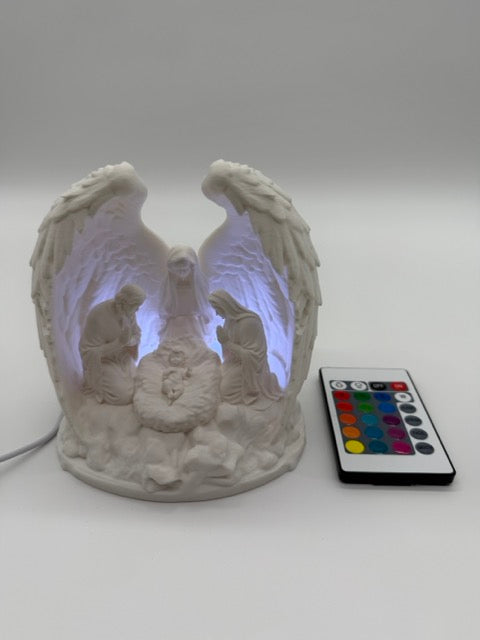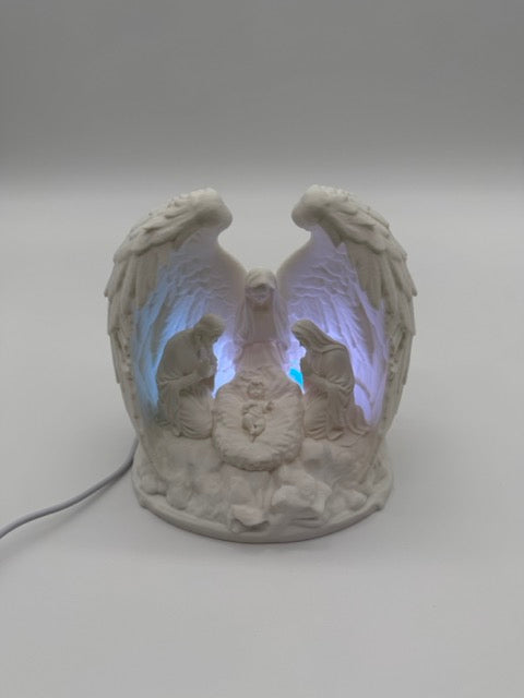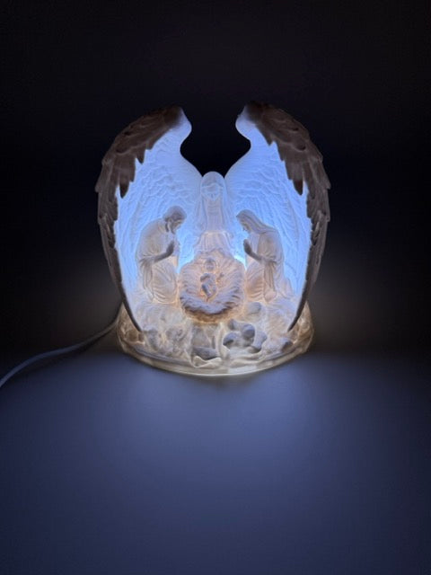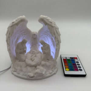 Breng warmte en magie in je interieur met deze prachtige verlichte kerststal, vervaardigd uit fijn porselein en subtiel omhuld door sierlijke engelenvleugels. De gedetailleerde figurenset – met Maria, Jozef en het kindje Jezus – wordt van achteren zacht aangelicht door LED-verlichting, waardoor een sfeervol en rustgevend schouwspel ontstaat.